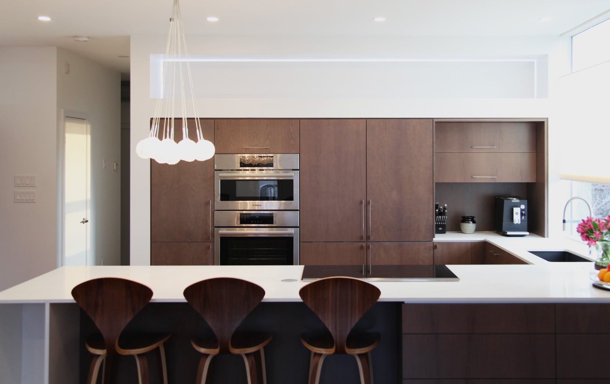 Ottawa At Home magazine has taken note of one of our latest condo projects, Hampton Park Lofts, which we recently completed last fall. We’re know in Ottawa for our award winning kitchen designs and we spared no effort on our recent creation. Designed in collaboration with Lorin Russell of Muskoka Cabinet Co., the kitchen creates a dramatic centrepiece for the entire condo suite. It ties seamlessly into an oversized window that brings views directly into the kitchen and expands to encompass an office area. Built-in appliances mean fridges and dishwashers are neatly hidden behind beautiful cherry cabinetry, and a retractable vent hood leaves the space open and airy. Custom pieces such as overhead display nieces with LED lighting and quartz waterfall counters add a custom flair.